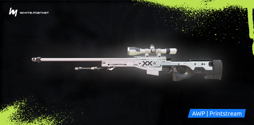 Monochrome, clean and craft-friendly. Printstream has long-term brand power across several weapons, and the AWP version benefits whenever people want minimalistic, sticker-ready surfaces. A high base price means even a single-digit percentage move is real money. Filter by float and inspect wear – some MWs look almost FN and usually trade first.