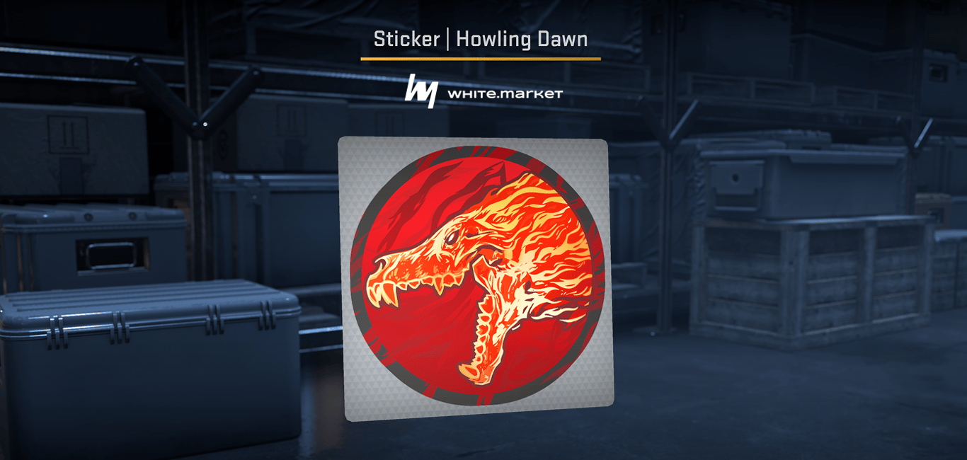 The Howling Dawn is one of the most famous stickers in the game. It could be obtained only via the event The Hunt Begins in 2014, so the supply is very limited right now.