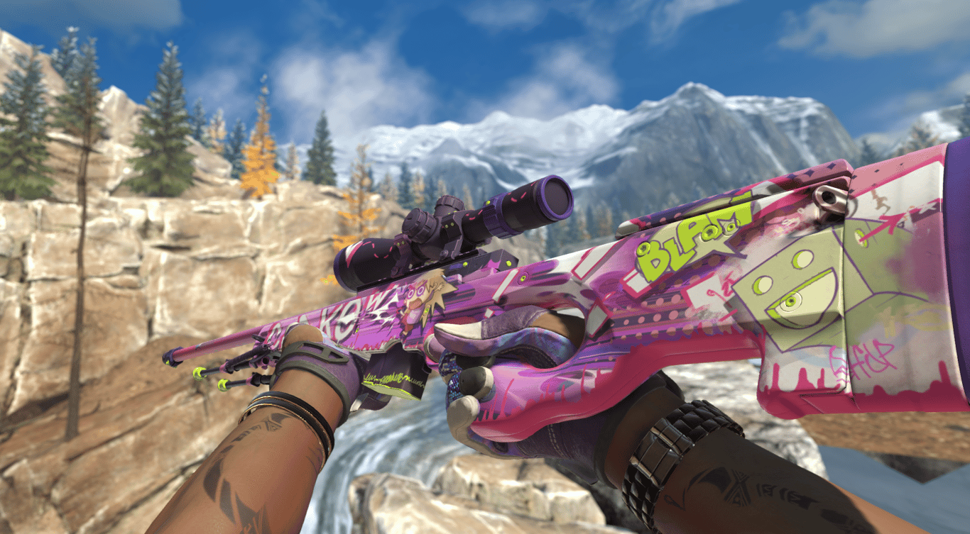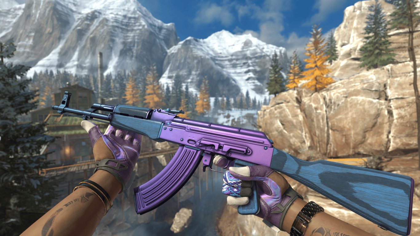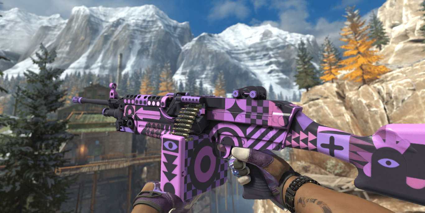• Description: A vibrant, graffiti-style skin with heavy purple accents. Bold and stands out on any map.