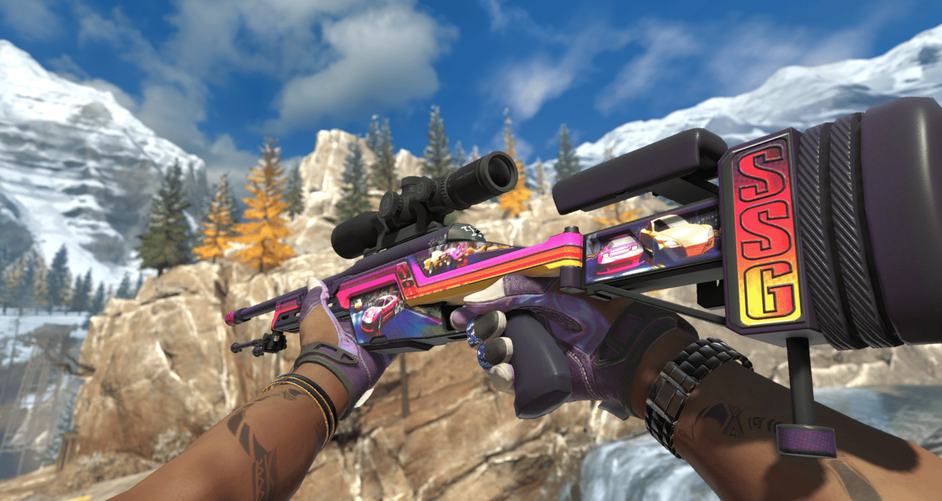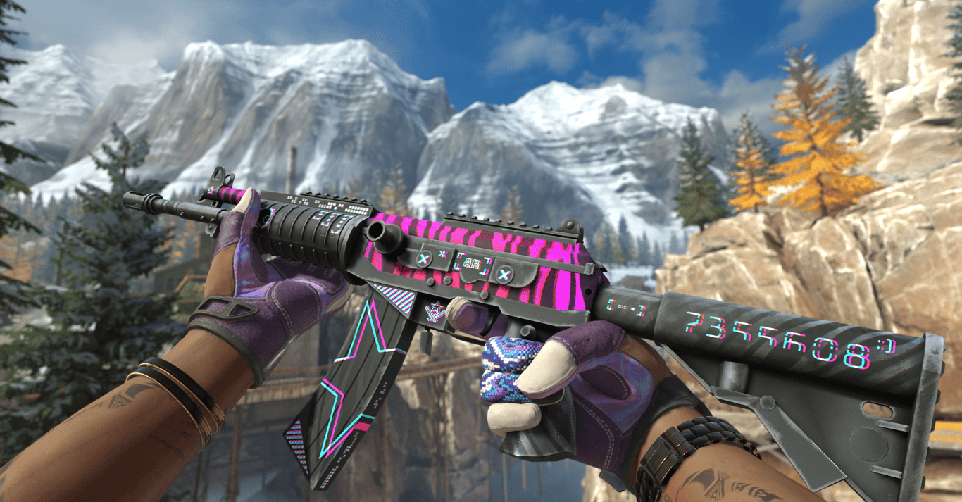 • Description: Pure neon synthwave vibes. Bright purple and pink racing stripes that look amazing under CS2 lighting.