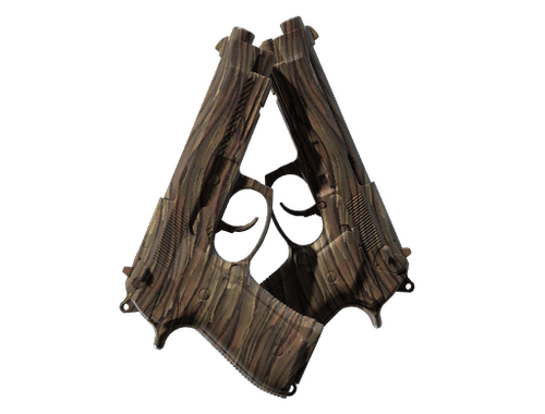 Das gleichzeitige Abfeuern zweier Berettas mit großen Magazinen verringert die Genauigkeit und erhöht die Nachladedauer. Wenn man es jedoch mal positiv betrachtet, so kommen Sie immerhin zum gleichzeitigen Abfeuern zweier Berettas mit großen Magazinen. Die Waffe wurde mit brauner Farbe spritzlackiert, um Trockenholz zu ähneln.