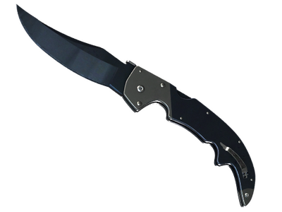 Als moderne Hommage an das Falchionschwert hat diese Clip-Point-Klinge eine gebogene Schneide. Die Waffe wurde kalt gebläut.