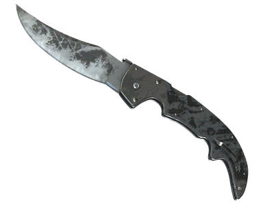 Als moderne Hommage an das Falchionschwert hat diese Clip-Point-Klinge eine gebogene Schneide. Einzelne Teile der Waffe wurden eintönig in einem Farbschema für Nachteinsätze spritzlackiert.