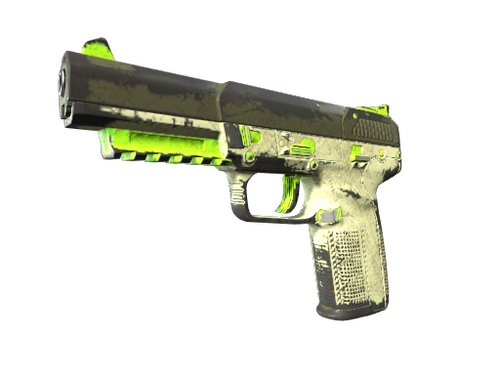 Die sehr präzise und panzerbrechende Five-SeveN ist eine kostspielige Pistole mit langer Nachladedauer, welche dafür ein großzügiges 20-Patronen-Magazin und einen einfach zu handhabenden Rückschlag bietet. Die Waffe wurde eintönig in Hellgrau und grellem Grün lackiert. Kollektion „Cache“