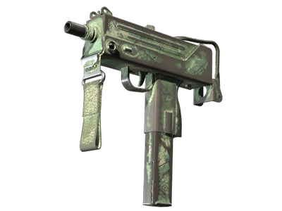 Die MAC-10, im Grunde genommen nur eine Box, die Kugeln ausspuckt, bietet eine hohe Feuerrate in Kombination mit geringer Präzision und hohem Rückstoß. Die Waffe wurde mit einem blassgrünen und cremefarbenen Design spritzlackiert.