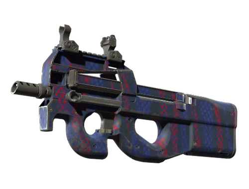 Die P90, leicht erkennbar durch ihr einzigartiges Bullpup-Design, ist dank ihrem großen Magazin und dem geringen Rückstoß eine großartige Waffe für Schüsse aus der Bewegung. Die Waffe wurde freihändig mit einem Drahtgewebe als Schablone spritzlackiert. Kollektion „Lake“