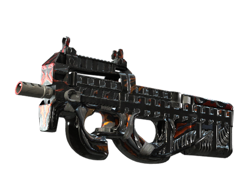 Die P90, leicht erkennbar durch ihr einzigartiges Bullpup-Design, ist dank ihrem großen Magazin und dem geringen Rückstoß eine großartige Waffe für Schüsse aus der Bewegung. Die Waffe wurde mit einer Sonderlackierung versehen, um einer P90 zu ähneln, die mit Klebeband, Schläuchen und Feuer übersät ist.