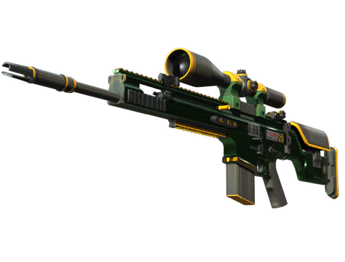 Dieser Gegenstand speichert bestätigte Kills. Die SCAR-20 ist ein halbautomatisches Scharfschützengewehr, deren hohe Feurrate und Durchschlagskraft auf lange Distanz mit eingeschränkter Beweglichkeit und hohen Kosten erkauft wird. Die Waffe wurde mit einer Sonderlackierung mit gelben Akzenten und einem Barcode versehen, um den Kassenprozess zu beschleunigen.