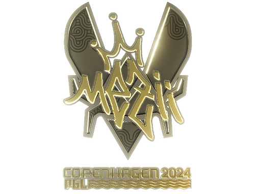 Dieser Gegenstand feiert das CS2-Major PGL Kopenhagen 2024. Dieser Aufkleber kann an jede Ihrer Waffen angebracht und abgekratzt werden, um abgenutzter auszusehen. Sie können einen Aufkleber mehrmals abkratzen, wodurch er jedes Mal etwas abgenutzter wird, bevor er gänzlich von der Waffe entfernt wird. Dieser goldene Aufkleber wurde vom professionellen Spieler William Cameron Merriman signiert, der für Vitality bei der CS2-Meisterschaft PGL Kopenhagen 2024 spielt.