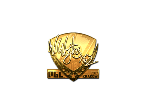 Dieser Gegenstand feiert das CS:GO-Major PGL Krakau 2017. Dieser Aufkleber kann an jede Ihrer Waffen angebracht und abgekratzt werden, um abgenutzter auszusehen. Sie können einen Aufkleber mehrmals abkratzen, wodurch er jedes Mal etwas abgenutzter wird, bevor er gänzlich von der Waffe entfernt wird. Dieser goldene Aufkleber wurde vom professionellen Spieler Wiktor Wojtas signiert, der für Virtus.pro bei der PGL Krakau 2017 spielt.
