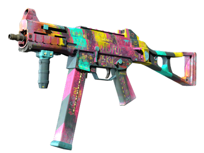 Das verkannte Mittelkind der MP-Familie - Das kleine Magazin der UMP45 ist der einzige Nachteil einer ansonsten vielseitigen Automatikwaffe für Nahkampfeinsätze. Über einer Grundierung aus neonfarbenen Streifen zieren diese sonderlackierte UMP-45 einige Skizzen von Kugeln, eine Krone und noch andere handgezeichnete Motive.