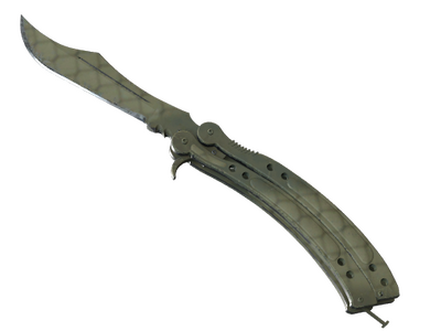 Dies ist ein speziell angefertigtes Balisong, allgemein als Butterflymesser bekannt. Das definierende Merkmal dieser Waffe ist das fächerartige Aufklappen einer frei rotierenden Klinge, welches ein schnelles Hervorholen sowie Verstecken ermöglicht. Aufgrund dessen sind Butterflymesser in vielen Ländern gesetzlich verboten. Die Waffe wurde mithilfe von Kartonschablonen und eines Netzes spritzlackiert.