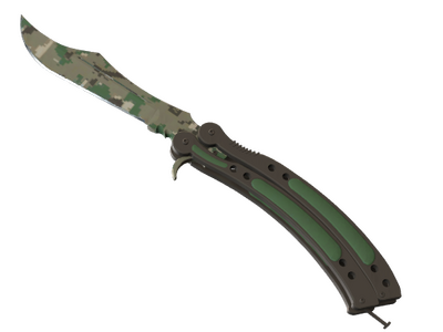 Dies ist ein speziell angefertigtes Balisong, allgemein als Butterflymesser bekannt. Das definierende Merkmal dieser Waffe ist das fächerartige Aufklappen einer frei rotierenden Klinge, welches ein schnelles Hervorholen sowie Verstecken ermöglicht. Aufgrund dessen sind Butterflymesser in vielen Ländern gesetzlich verboten. Die Waffe wurde durch Wassertransferdruck mit einem Digital Disruptive Pattern (DDPAT) versehen.