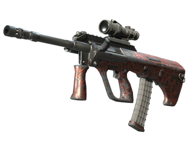 Dieser Gegenstand feiert das CS:GO-Major BLAST.tv Paris 2023. Dieser Gegenstand wurde während des Spiels (Gruppenphase) zwischen Monte und Natus Vincere gefunden. Bekannt als mächtige und genaue Waffe kompensiert das mit einem Zielfernrohr ausgestattete AUG-Sturmgewehr seine lange Nachladezeit mit einem geringen Streuradius und einer hohen Feuerrate. Die Waffe wurde mit einem roten Leiterplattenmuster über einer schwarzen Grundierung versehen.