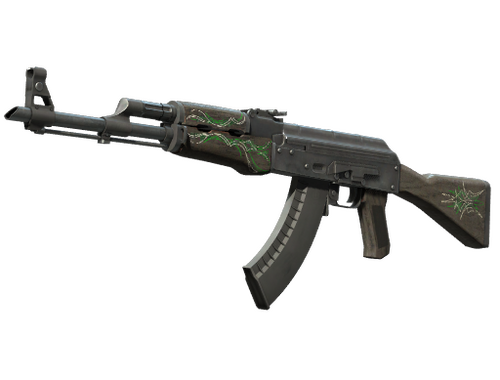 Potente y fiable, el AK-47 es uno de los rifles de asalto más famosos del mundo. Es sumamente letal en ráfagas cortas y controladas. Se le ha aplicado una lámina de madera de roble y ha sido pintado con rayas verdes y blancas.