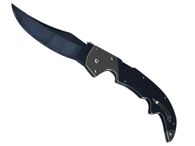 Como homenaje moderno a una espada alfanje, esta hoja de punta cóncava tiene un filo curvado. Se ha dejado en un acabado azul profundo.