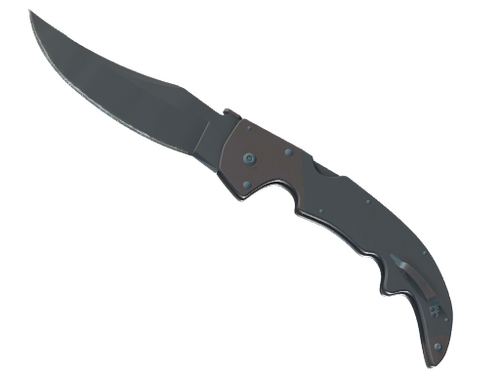 Como homenaje moderno a una espada alfanje, esta hoja de punta cóncava tiene un filo curvado. Se han pintado algunas partes con espray de colores sólidos en tonos oscuros.