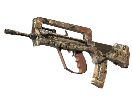 Una opción económica para los jugadores con poco dinero, el FAMAS cubre con efectividad el vacío que hay entre el más caro de los rifles y el subfusil menos efectivo. Se le ha aplicado un adhesivo hidrográfico de camuflaje variado.