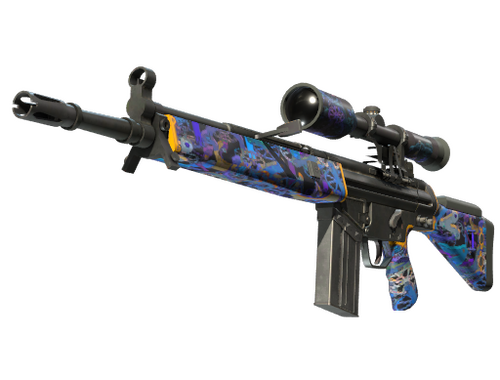 El costoso G3SG1 reduce considerablemente la velocidad de movimiento, pero lo compensa con una cadencia de disparo superior a la de otros rifles de francotirador. Se le ha aplicado un adhesivo hidrográfico de mecanismos de relojes con colores psicodélicos y acentuado con pegatinas de transferencia térmica.