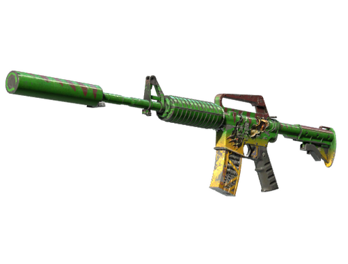 El M4A1 con silenciador tiene un cargador más pequeño que su homólogo no silenciado, pero proporciona disparos menos audibles con menor retroceso y mayor precisión. Se ha personalizado con un dinosaurio que parece estar rasgando el costado del arma con sus garras.