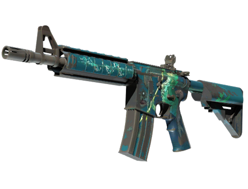 Más preciso pero menos potente que su equivalente, el AK-47, el M4A4 es el rifle de asalto automático disponible para los antiterroristas. Se ha personalizado con una representación de la batalla entre Piscis y Poseidón.