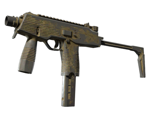 Fabricado en Suiza, el innovador subfusil MP9 es el arma ergonómica de polímero favorita de las empresas de seguridad privada. Se ha pintado con espray usando pequeños trozos de cinta adhesiva como plantillas. Colección Dust 2