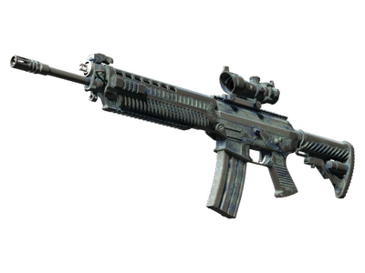 El SG553 exclusivo de los terroristas es una alternativa superior al AK-47 por su mayor efectividad en largas distancias. Este recuerdo de Seaside tiene unas líneas gruesas por su superficie pintadas a mano alzada con colores que contrastan entre ellos.