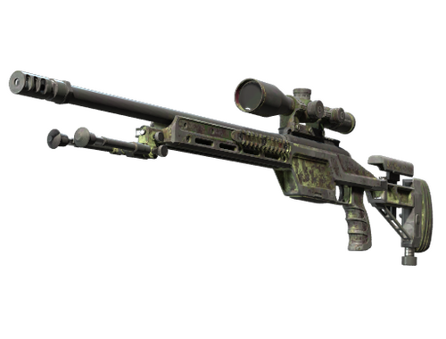 El SSG08 de cerrojo es un rifle de francotirador que no causa mucho daño pero es bastante rentable, considerándose una sabia elección para los enfrentamientos a larga distancia durante las primeras rondas. Se ha pintado con espray usando pequeños trozos de cinta adhesiva como plantillas. Colección Aztec