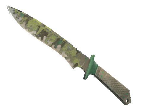 Este artículo registra las víctimas confirmadas. Un clásico de la serie de Counter‑Strike, el filo de este cuchillo es de estelite y está encajado a presión firmemente en su sitio gracias a su ajuste preciso con el titanio del filo y del lomo de la hoja. El mango es de marfil de mastodonte fosilizado, envuelto en un revestimiento de fibra de carbono. Se ha pintado usando un camuflaje forestal hidrográfico.