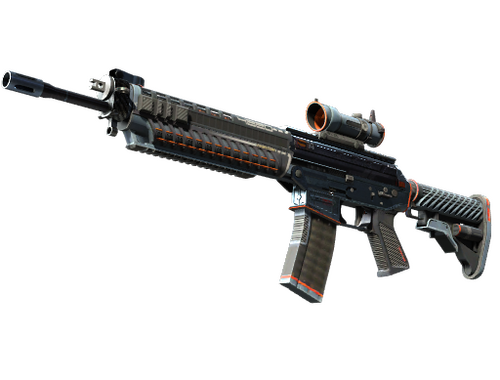 Este artículo registra las víctimas confirmadas. El SG553 exclusivo de los terroristas es una alternativa superior al AK-47 por su mayor efectividad en largas distancias. Se ha pintado a mano con un diseño azul y gris y un acabado con detalles naranjas.