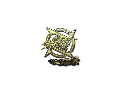 Este artículo conmemora: Campeonato de CS:GO PGL de Amberes 2022. Esta pegatina puede aplicarse a cualquier arma que poseas y rasparse para que su aspecto parezca más desgastado. Puedes raspar la misma pegatina varias veces, haciendo que en cada una de ellas parezca más desgastada hasta llegar al punto en que sea eliminada del arma. Esta pegatina dorada está autografiada por Ludvig Brolin, jugador profesional del equipo Ninjas in Pyjamas en el Major Championship de CS:GO PGL de Amberes 2022.