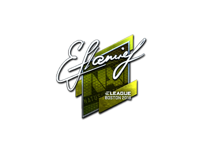Este artículo conmemora: Campeonato de CS:GO ELEAGUE de Boston 2018. Esta pegatina puede aplicarse a cualquier arma que poseas y rasparse para que su aspecto parezca más desgastado. Puedes raspar la misma pegatina varias veces, haciendo que en cada una de ellas parezca más desgastada hasta llegar al punto en que sea eliminada del arma. Esta pegatina reflectante está autografiada por Egor Vasilyev, jugador profesional del equipo Natus Vincere en Boston 2018.