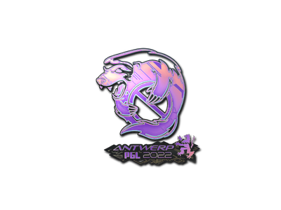 Este artículo conmemora: Campeonato de CS:GO PGL de Amberes 2022. Esta pegatina puede aplicarse a cualquier arma que poseas y rasparse para que su aspecto parezca más desgastado. Puedes raspar la misma pegatina varias veces, haciendo que en cada una de ellas parezca más desgastada hasta llegar al punto en que sea eliminada del arma.