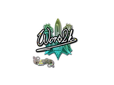 Este artículo conmemora: Campeonato de CS:GO BLAST.tv de París 2023. Esta pegatina puede aplicarse a cualquier arma que poseas y rasparse para que su aspecto parezca más desgastado. Puedes raspar la misma pegatina varias veces, haciendo que en cada una de ellas parezca más desgastada hasta llegar al punto en que sea eliminada del arma. Esta pegatina con purpurina está autografiada por Volodymyr Veletniuk, jugador profesional del equipo Monte en el Major Championship de CS:GO BLAST.tv de París 2023.