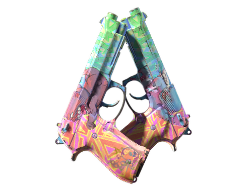 Tirer avec deux Berettas à grand chargeur diminuera la précision et augmentera le temps de rechargement. Mais bon, vous aurez quand même la chance de tirer avec deux Berettas à grand chargeur. Cette arme a été personnalisée avec deux chérubins par-dessus une couche de graffitis colorés.