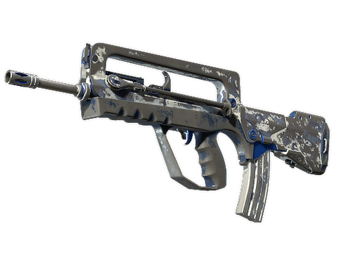 Une option bon marché pour les joueurs à court d'argent, le FAMAS remplit efficacement son rôle entre les fusils plus coûteux et le manque d'efficacité des pistolets mitrailleurs. Cette arme a été personnalisée avec un motif de camouflage bleu et gris.