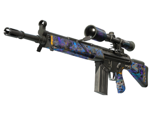 Le G3SG1 est assez onéreux et réduit considérablement la vitesse de déplacement, mais il compense ce problème par une cadence de tir bien plus élevée que les autres fusils de précision. Cette arme a été personnalisée en utilisant un film hydrographique d'un motif de mécanismes de montre réalisé en couleurs psychédéliques et accentué par des décalcomanies de transfert thermique.