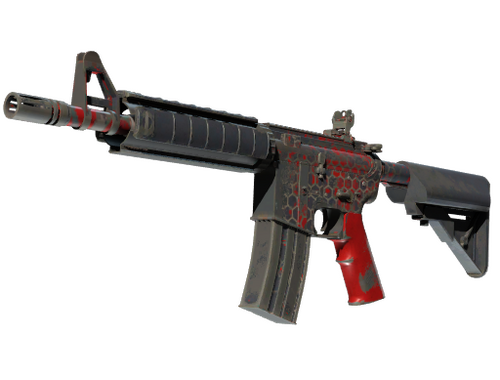 Plus précise mais moins puissante que l'AK-47, la M4A4 est le fusil d'assaut automatique de prédilection des antiterroristes. Cette arme a été personnalisée en appliquant un film hydrographique rouge et noir.