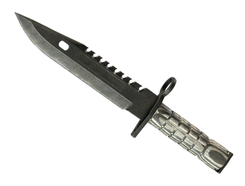 Il s'agit de la baïonnette M-9. Initialement destinée à être montée sur un fusil, elle est aussi bien adaptée pour les combats rapprochés. Cette arme a été personnalisée d'un manche noir stratifié et sa peinture a été délavée.