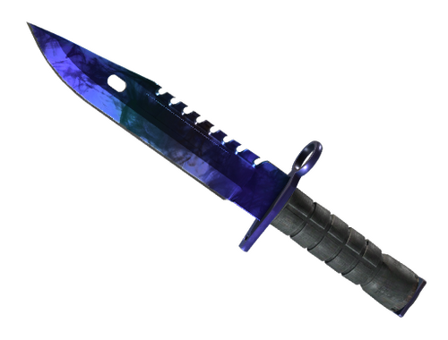 Il s'agit de la baïonnette M-9. Initialement destinée à être montée sur un fusil, elle est aussi bien adaptée pour les combats rapprochés. Cette arme a été personnalisée en utilisant des peintures métalliques noires et argentées pour obtenir des marbrures moyennes, puis elle a été revêtue de couleurs plus attrayantes.