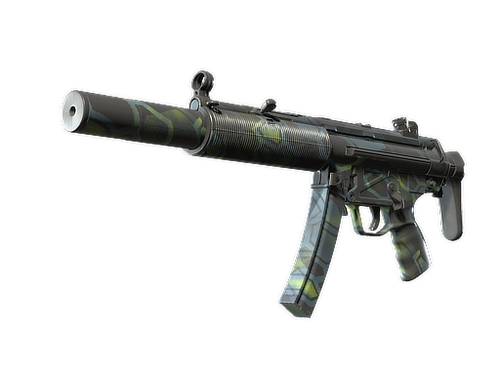 Souvent copié, mais jamais égalé, l'emblématique MP5 est sans doute le pistolet-mitrailleur le plus polyvalent et populaire au monde. Cette variante SD est équipée d'un silencieux, ce qui rend cette arme déjà formidable extrêmement discrète. Cette arme a été peinte à la bombe avec un motif alvéolé bleu et vert.
