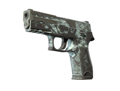 Une arme à faible recul et à cadence de tir élevée, le P250 est un choix relativement peu coûteux contre des adversaires portant des protections. Cette arme a été peinte à la bombe avec un motif géométrique.