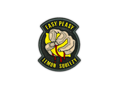 Cet écusson peut être appliqué à n´importe quel agent que vous possédez. Une fois appliqué, il peut être retiré, mais pas récupéré. Cet écusson a réussi à échapper au contrôle de qualité. La faute « SQEEZY » n'a pas été corrigée