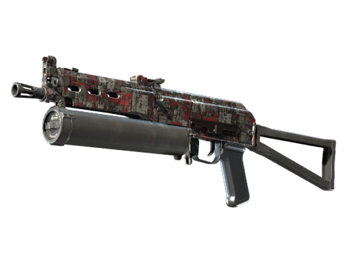 Le pistolet mitrailleur Bizon inflige de faible dégâts, mais offre un chargeur hélicoïdal haute capacité de conception unique qui permet de recharger rapidement. Un motif de schéma de câblage a été appliqué à cette arme par anodisation.
