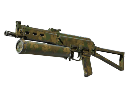 Le pistolet mitrailleur Bizon inflige de faible dégâts, mais offre un chargeur hélicoïdal haute capacité de conception unique qui permet de recharger rapidement. Cette arme a été peinte à la bombe avec des pochoirs tel que des feuilles. Collection Militia