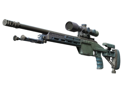 Le SSG08 à verrou inflige de faibles dégâts, mais est un excellent fusil de précision en matière de cout-efficacité, ce qui en fait un choix judicieux en début de partie pour les spécialistes du tir embusqué. Cette arme a été personnalisée avec des spirales en demi-teinte vert et bleu.