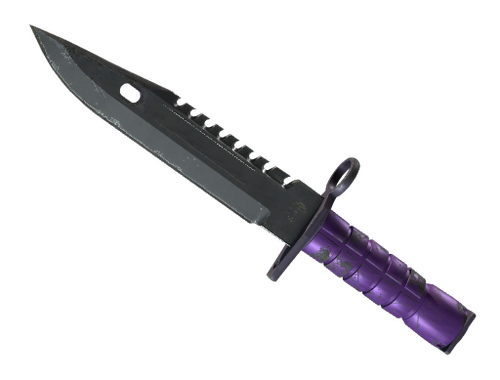 Il s'agit de la baïonnette M-9. Initialement destinée à être montée sur un fusil, elle est aussi bien adaptée pour les combats rapprochés. Des parties de cette arme ont été peintes selon un jeu de couleurs noir et violet.