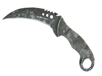 Ce karambit au pommeau d'ivoire dispose de rivets en laiton et de fines dents de scie. Parfait pour couper à l'aller et déchiqueter au retour. Cette arme a été peinte à la bombe à l'aide d'un enchevêtrement de ruban adhésif utilisé comme un pochoir.