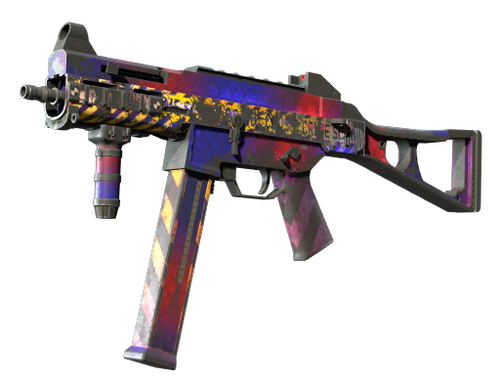 L'UMP45, cadet incompris de la famille des pistolets mitrailleurs, est une arme automatique versatile en combat rapproché, malgré son petit chargeur. Cette arme a été peinte avec une base rouge et bleue, sur laquelle a été appliqué un motif de ruban de signalisation