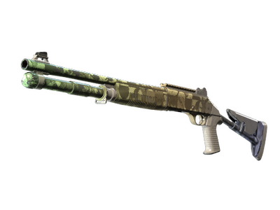 Le XM1014 est un puissant fusil à pompe semi-automatique qui justifie son prix assez élevé par sa capacité à recouvrir rapidement une pièce de plombs. Cette arme a été personnalisée avec un motif multicolore en demi-teinte.